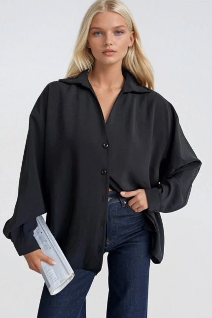 Modal Kumaşın Sofistike GücüSiyahın zamansız otoritesini modal kumaşın ipeksi hafifliğiyle buluşturan bu gömlek, her ortamda fark yaratan bir duruş sunuyor.