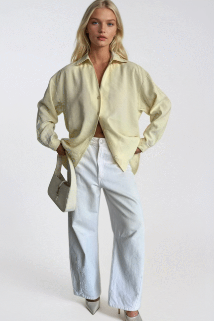 Hafifliğin ve Rengin Işığında Modal kumaşın ipeksi dokusu ve oversize kesimin özgür silüeti, bu gömleği gündelik şıklığın yeni tanımına taşıyor.