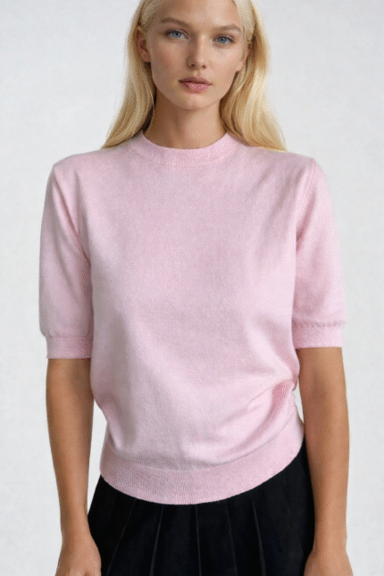 Bisiklet Yaka Kısa Kol Pembe Triko Bluz