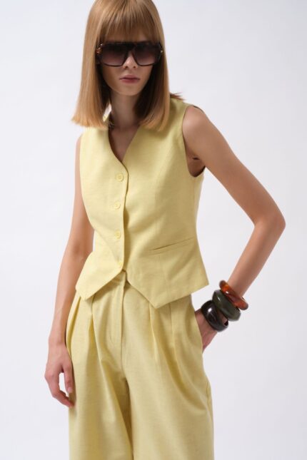 Jelek i Verdhë prej Liri me Butona në Anë dhe Asimetrik