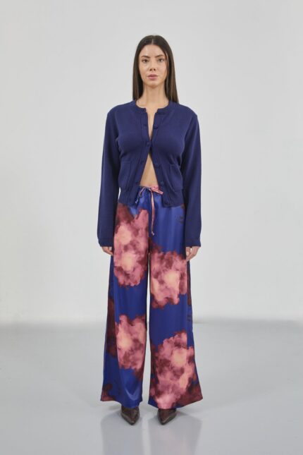 Pantallona blu blu saten me model me bel elastik