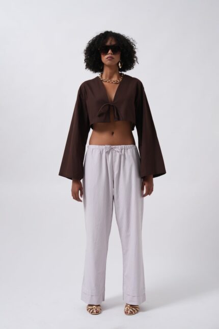 Kalın Askılı Crop Bluz, Beli Kumaş Kemerli Bol Paça Pantolon Manken Ölçüleri : Göğüs : 85 cm Bel : 58