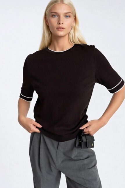 Bluzë bazë e thurur me prerje të zezë
