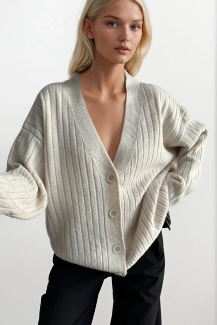 Düşük Bel Çift Düğmeli Gri Wide Leg Jean