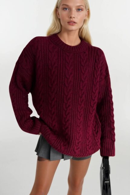 Örgü Desen Bordo Basic Triko Kazak