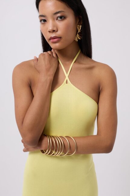Çapraz Askılı Maxi Sarı Elbise