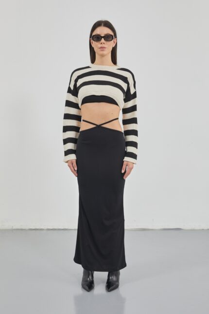 Yırtmaç Detaylı, Esnek Ve Likralı Kumaş, Uzun Etek Manken Ölçüleri : Göğüs : 81 cm Bel : 61 cm Basen