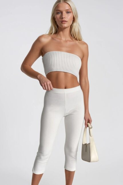 Yüksek Bel Likralı Beyaz Bermuda Pantolon