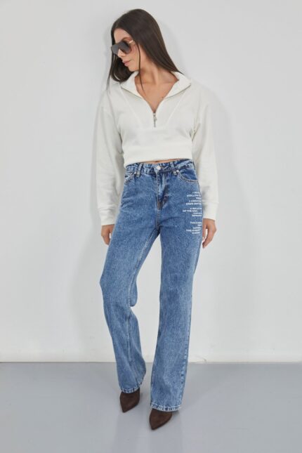 Xhinse blu të printuara me bel të ulët
