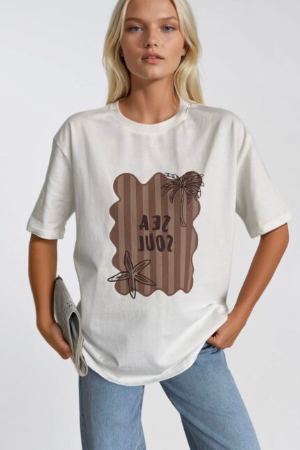 Sea Soul Baskılı Oversize Beyaz T-Shirt