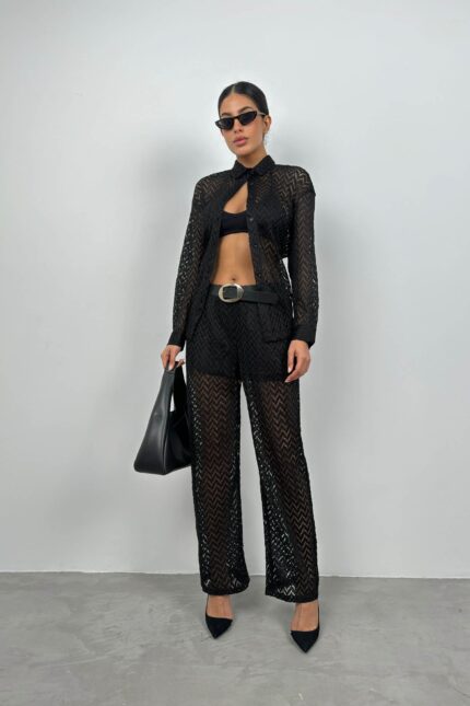 Bisiklet Yaka Siyah Triko Kazak Pantolon İkili Takım