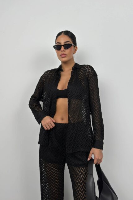 Transparan, Manşet Detaylı Gömlek Beli Lastikli, AstarlI, Transparan Pantolon Manken Ölçüleri : Göğüs : 84 cm Bel : 66 cm
