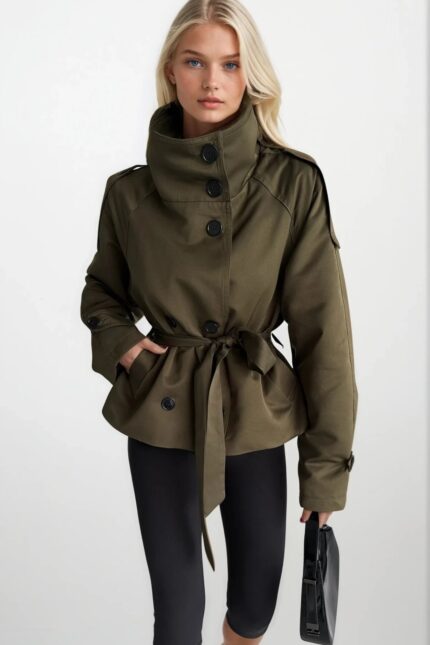 Yaka ve Manşet Detay, Oversize, Rahat Kalıp, Trenç, Düğmeli, Cepli, Casual Manken Ölçüleri : Göğüs : 85 cm Bel :