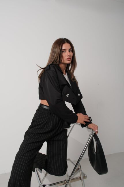 Kemer Detaylı, Standart Yakalı, Crop, Trençkot Manken Ölçüleri : Göğüs : 89 cm Bel : 68 cm Basen : 95
