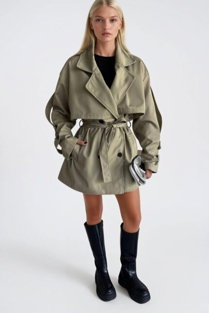 Doğanın Tonu, Modanın Dili Toprakla buluşan bir palet, zamanla olgunlaşan bir şıklık. Kuşak Detay Basic Haki Trençkot, doğal tonuyla hem