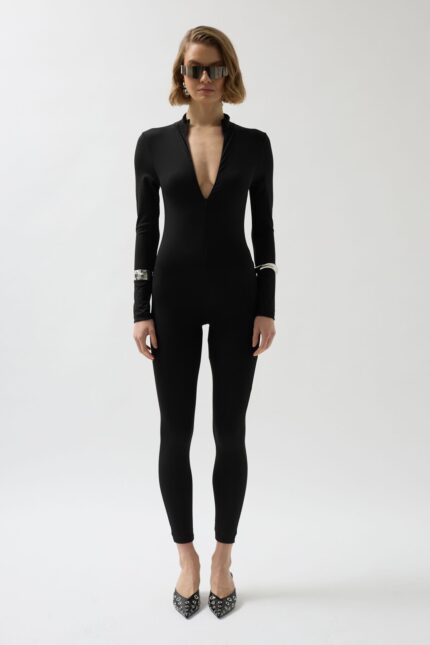 Fermuar Detaylı Siyah Tulum
