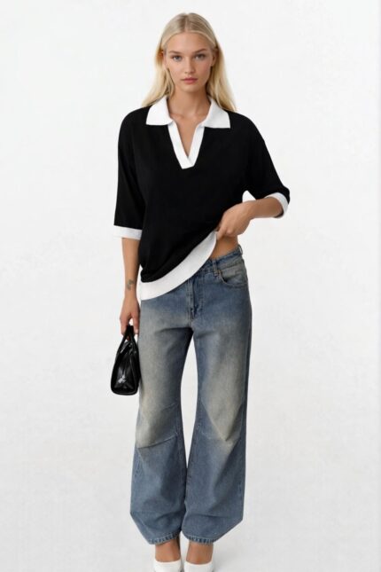 Bluzë bazë e thurur me prerje të zezë
