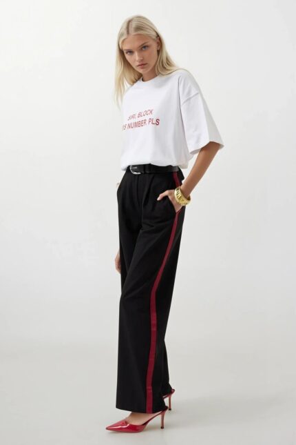 Pantallona të zeza Palazzo me detaje me vija