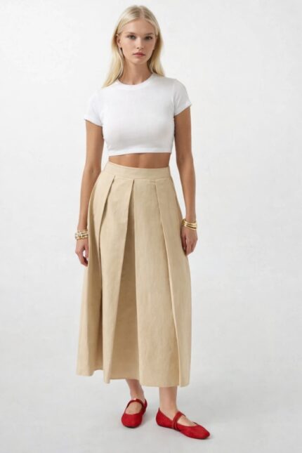 Madonna Yaka Ekru Fermuarlı Triko Bluz