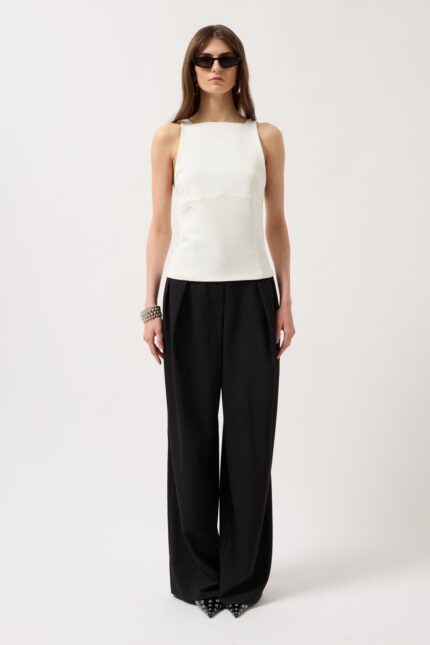 Sırt Kurdele Detay Beyaz Bluz