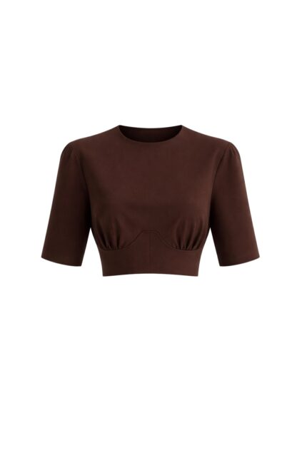Bel Oturtmalı Crop Kahverengi T-Shirt