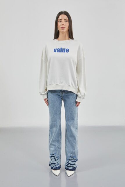 Përmasa, qafë ekuipazhi, mëngë të gjata, e printuar, pa ngritje, manekini i xhupit Përmasat: Gjoks: 85 cm Beli: 58 cm