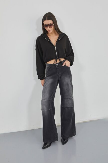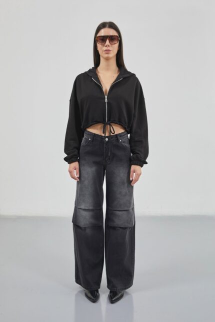 Me zinxhir, me shtypje të pasme, mëngë elastike, kordon Manekinin e detajuar Crop Crop Sweatshirt Dimensionet: Gjoks: 85 cm Beli: