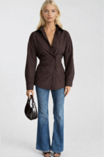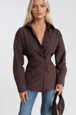 Toprağın Sıcaklığı, Tasarımın ZarafetiKahverengi tonların doğal sıcaklığını özgün bir kesimle buluşturan bu gömlek, sonbahar ve ilkbahar gardrobunun vazgeçilmezi olmaya aday. Asimetrik düğme detayı ve bel oturtmalı yapısıyla hem gündelik hem de şık kullanımlara kolayca uyum sağlıyor.Tasarım Detayları Asimetrik düğme kapama detayı Bel oturtmalı, vücut hatlarını öne çıkaran kesim Sıcak kahverengi ton — toprak renkleriyle uyumlu, zamansız bir palet XS’ten L’ye kadar beden seçeneği Nasıl Kombinlenir?Krem veya bej tonlu bir pantolon ile doğal bir uyum yakalıyın; ya da siyah dar paça ile kontrast bir görünüm elde edin. Toprak tonlarının sıcaklığını her mevsim taşıyan bir parça.Ürün Kodu: 52118011
