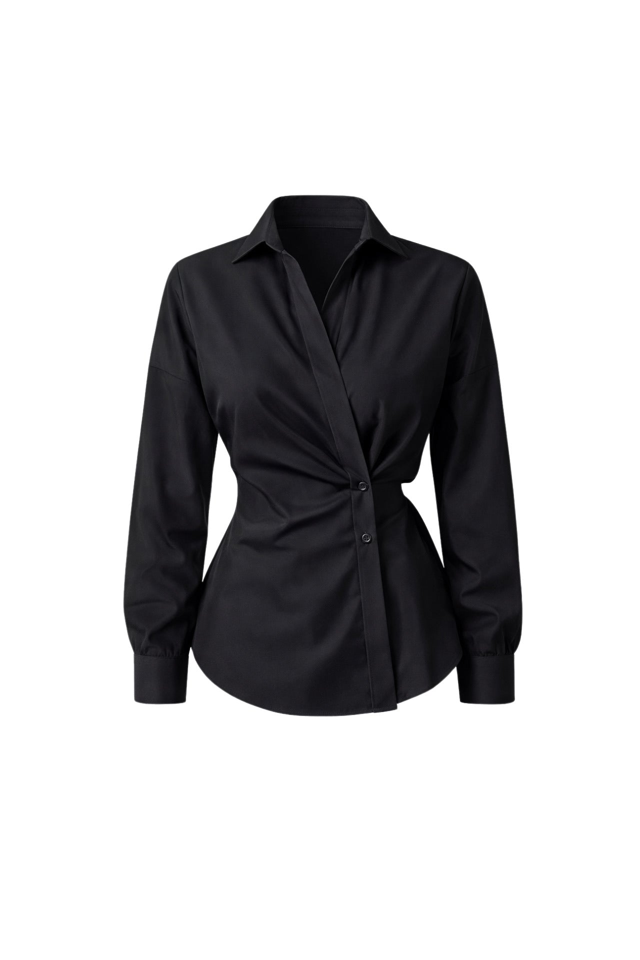 Asimetrik Düğme Detay Bel Oturtmalı Siyah Gömlek