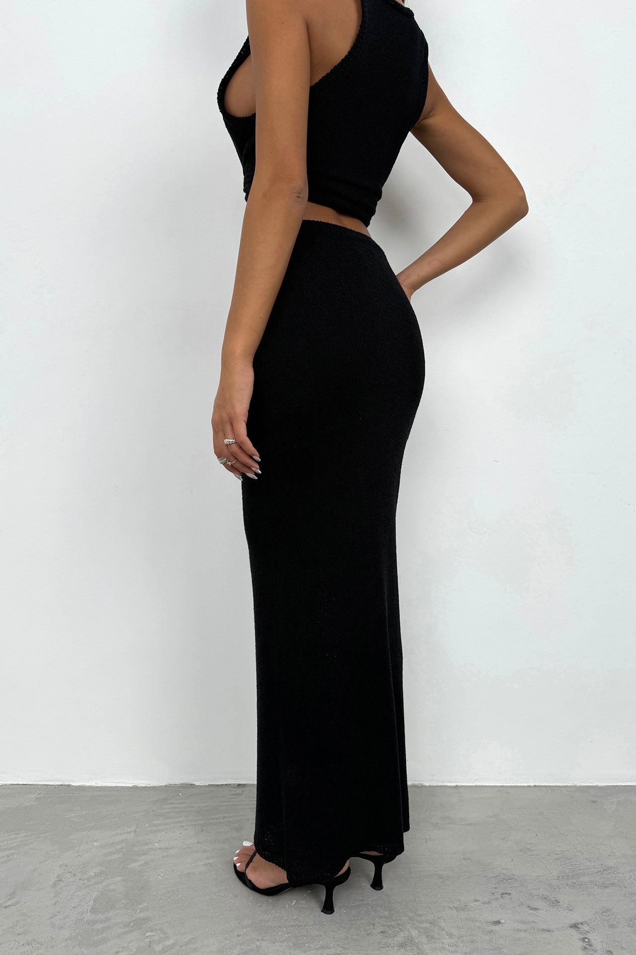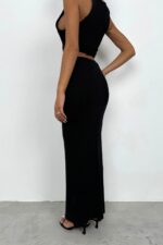 Tek Omuz Yırtmaç Detay Siyah Pareo
