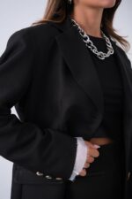 Astar Detay Vatkalı Siyah Blazer