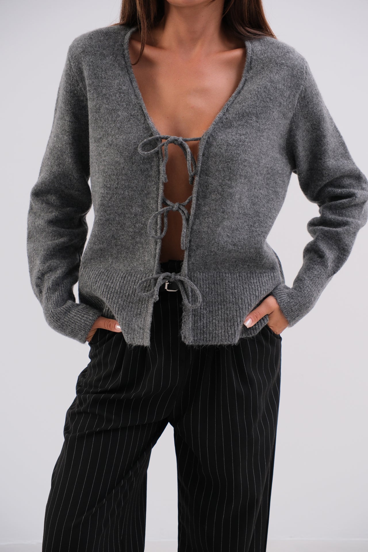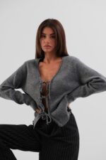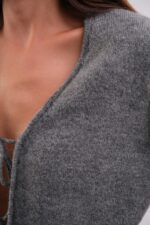 Bağcıklı Gri Hırka