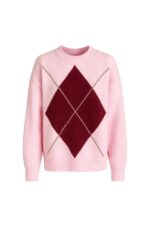 Baklava Desen Bisiklet Yaka Pembe Triko Kazak