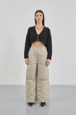 Set trikotazhesh bezhë me bluzë me rripa
