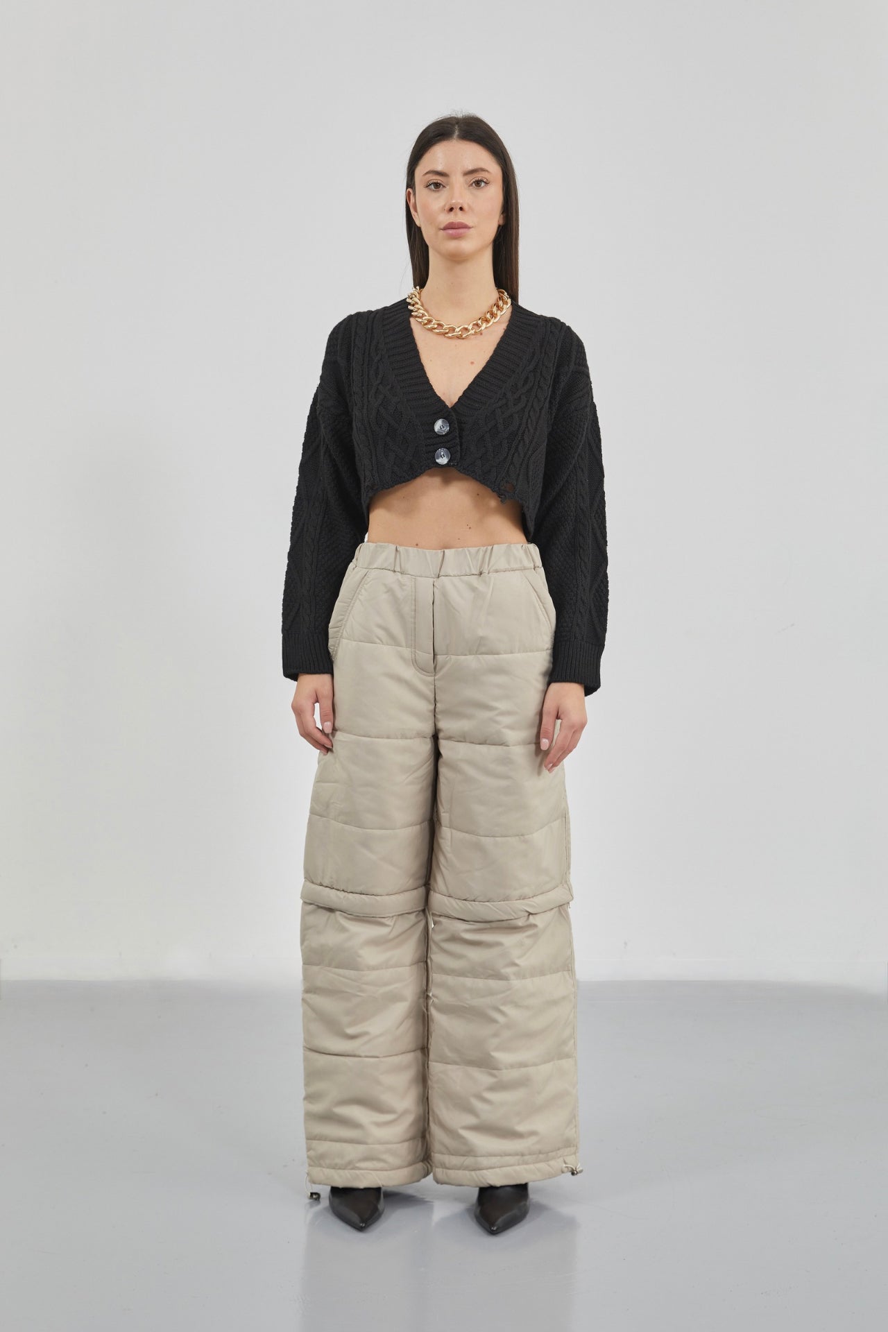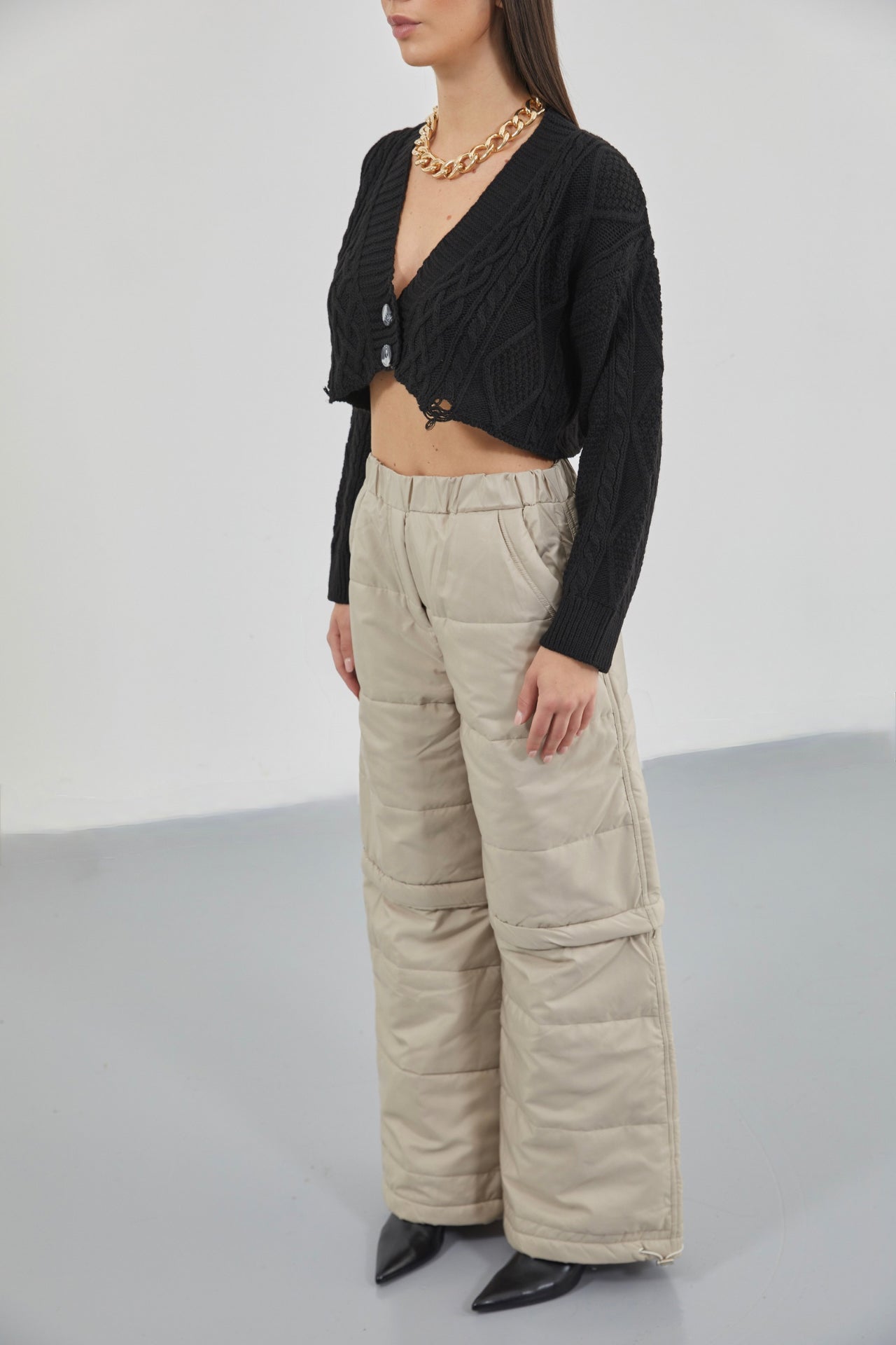 Halter Yaka Gri Crop