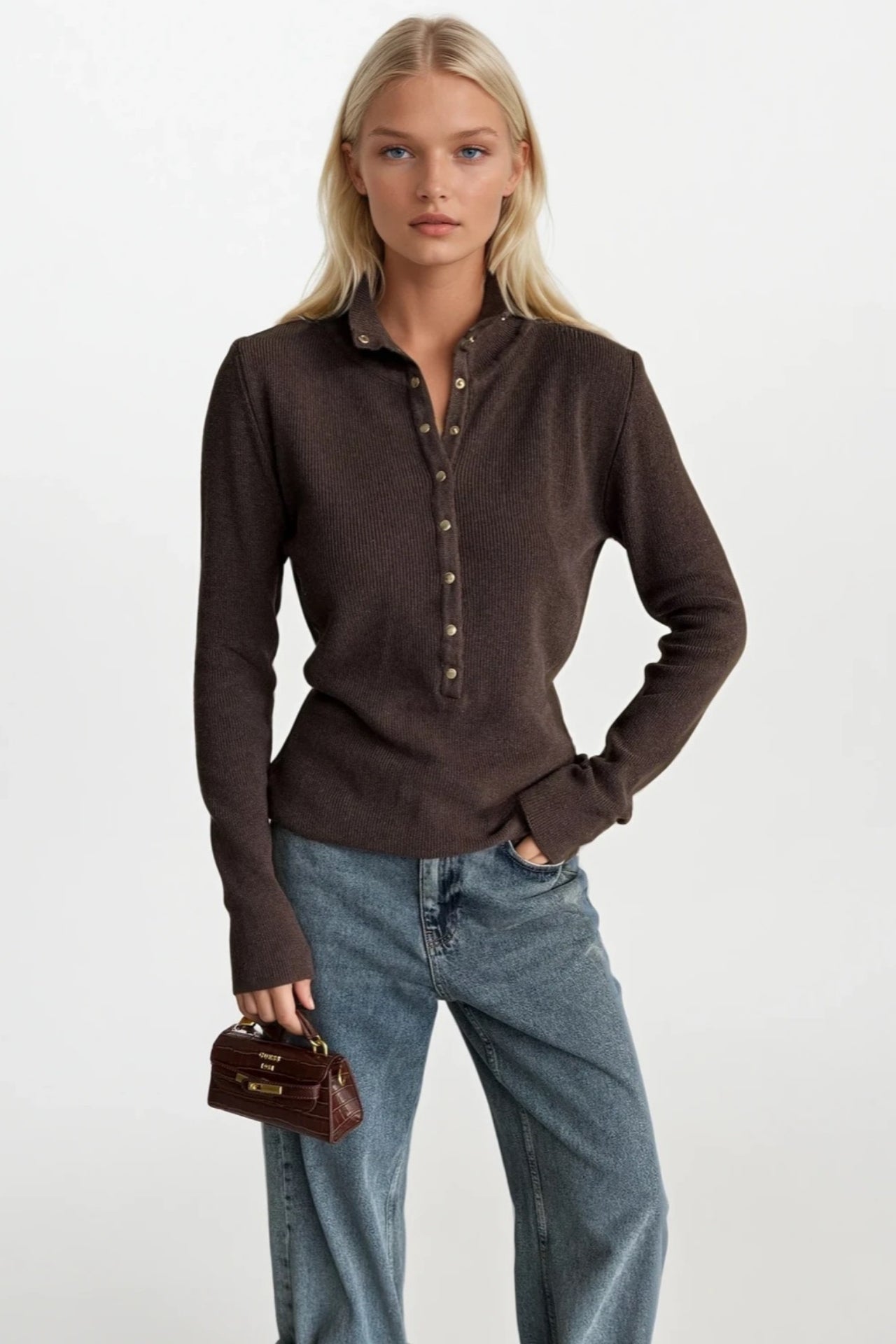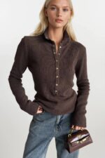 Balıkçı Yaka Çıtçıtlı Vizon Triko Bluz