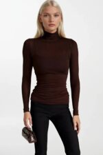 Balıkçı Yaka Kahverengi Transparan Bluz