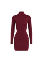 Balıkçı Yaka Mini Bordo Elbise