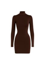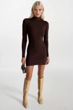 Balıkçı Yaka Mini Kahverengi Elbise