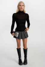 Prerje ovale, jakë këmishë, mëngë të gjata, këmishë Ultra Crop Modeli i modelit: Gjoks: 85 cm Beli: 58 cm Ijet: