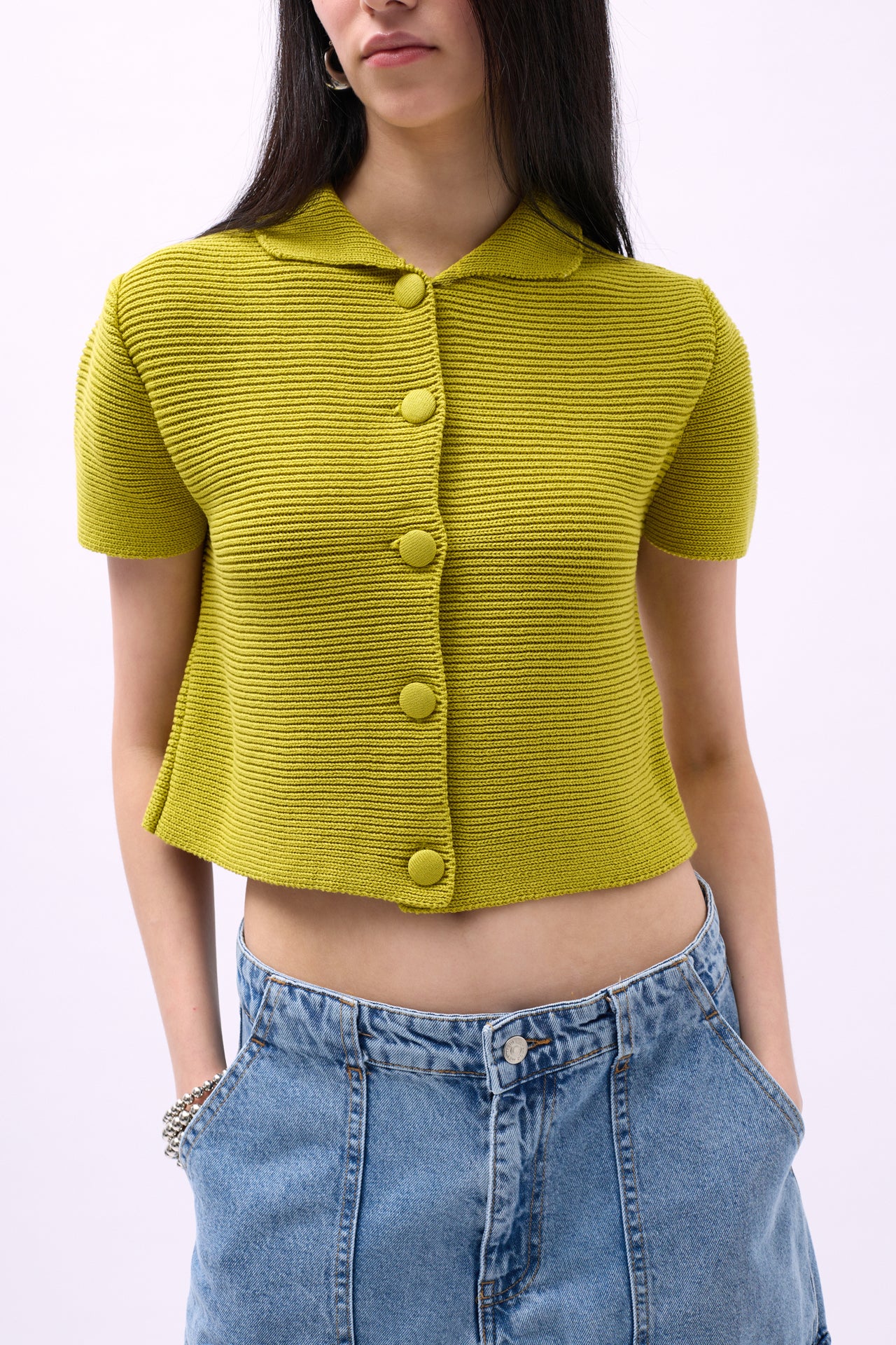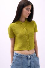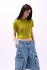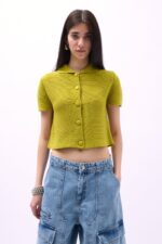 Kısa Kol, Polo Yaka, Düğmeli, Triko Örgü Crop Bluz Manken Ölçüleri : Göğüs : 80 cm Bel : 61 cm Basen : 90 cm Manken Boy : 176 cm Kilo : 53 kg Manken üzerindeki S bedendir. Ürün İçeriği : 100 Polyester Ürün Kodu : 52215011