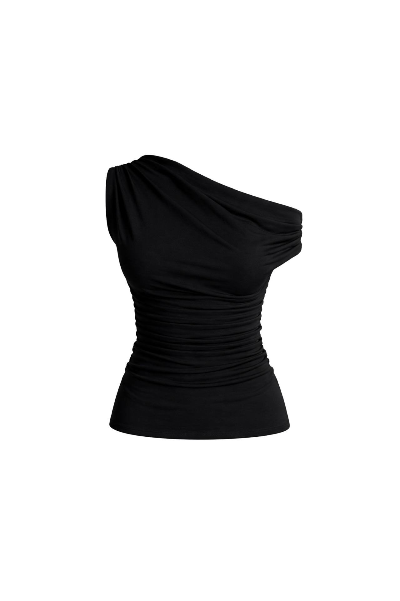 Bel Oturtmalı Asimetrik Omuz Detay Siyah Bluz