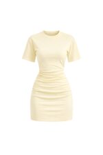 Bel Oturtmalı Büzgülü Sarı Mini Elbise