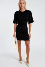 Bel Oturtmalı Büzgülü Siyah Mini Elbise