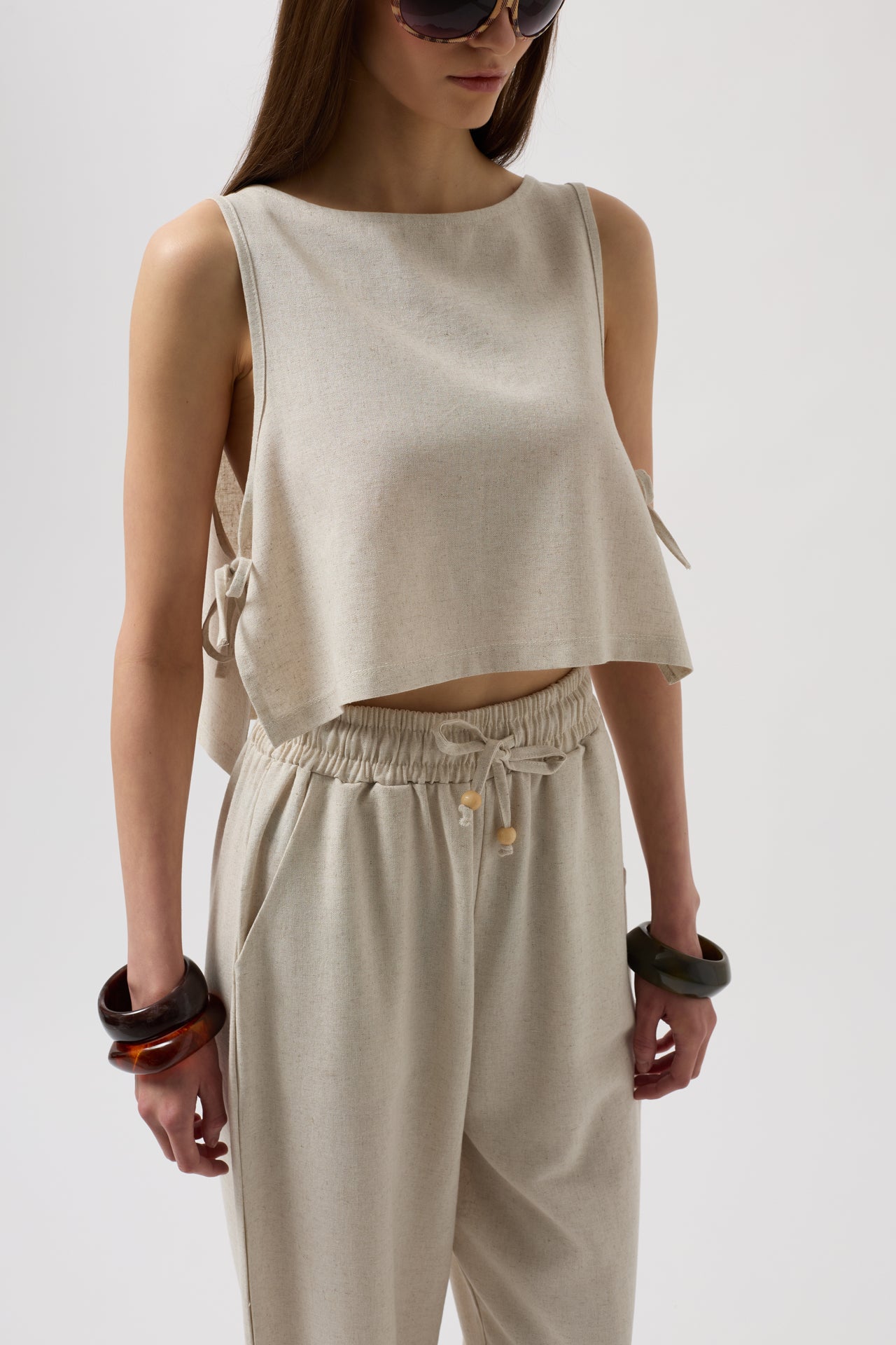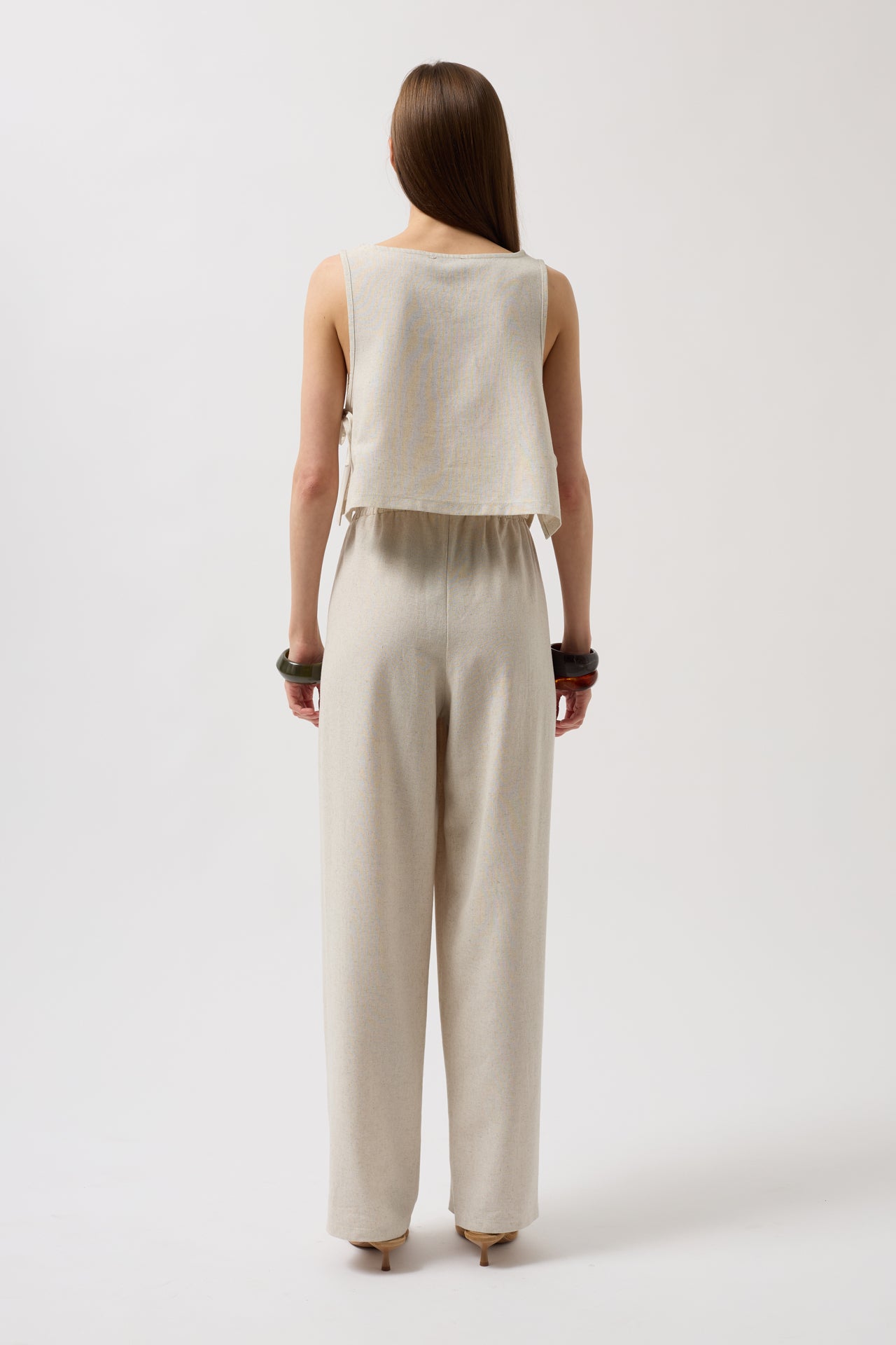Beli Lastikli, Bağcık Aksesuar Detaylı, Rahat Kesim, Keten Pantolon Manken Ölçüleri : Göğüs : 79 cm Bel : 61 cm Basen : 88 cm Manken Boy : 172 cm Kilo : 54 kg Manken üzerindeki S bedendir. Ürün İçeriği : 100 Pamuk Ürün Kodu : 52201023