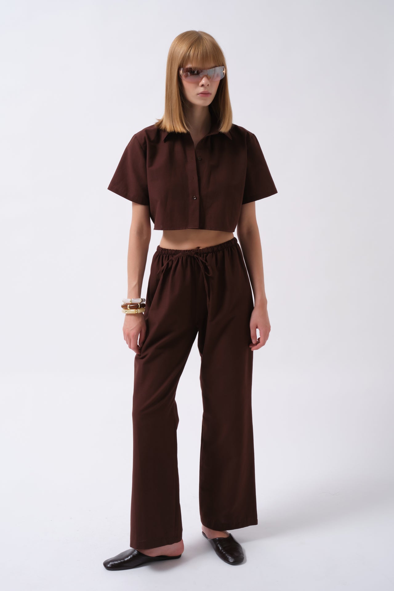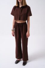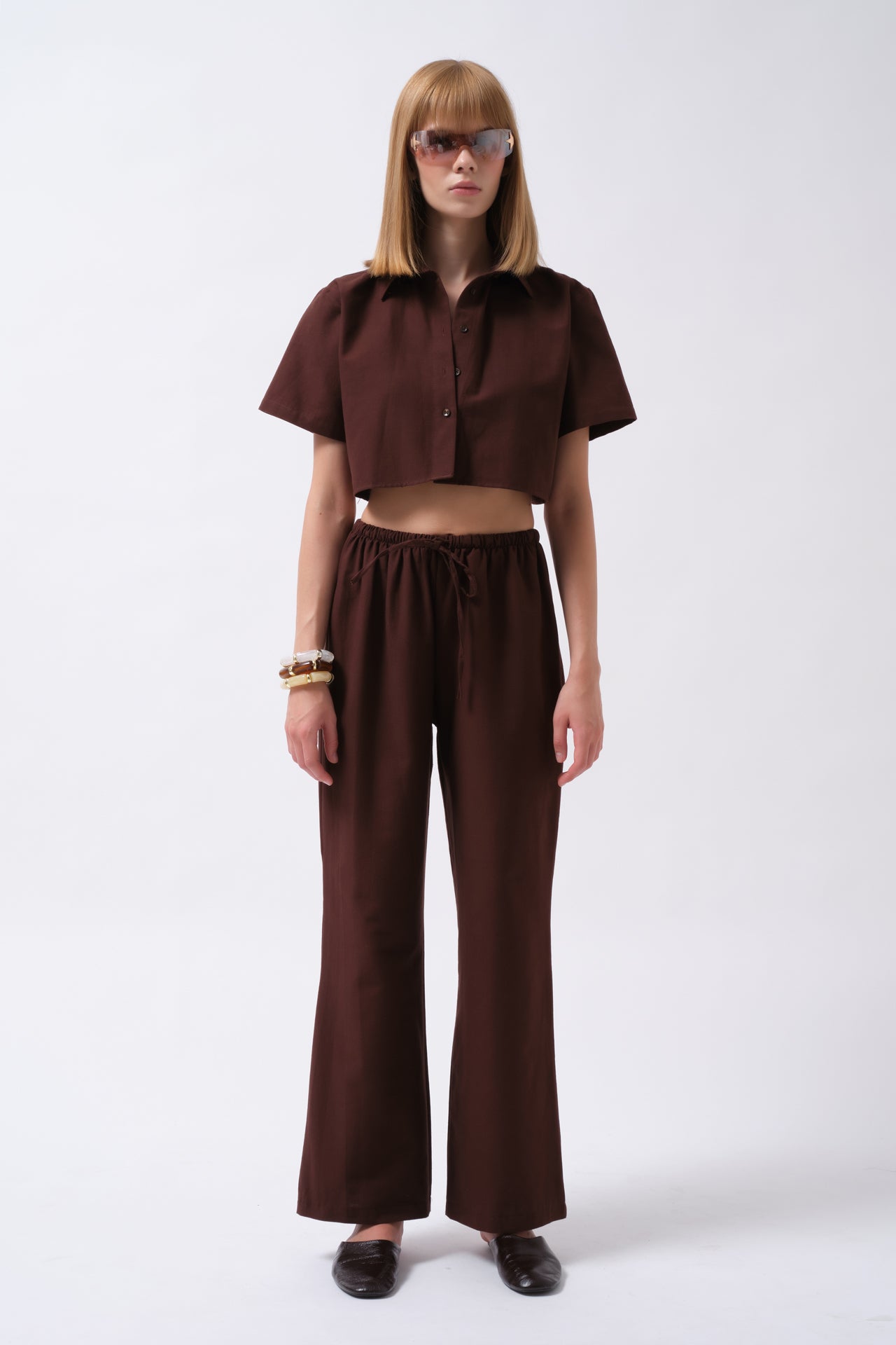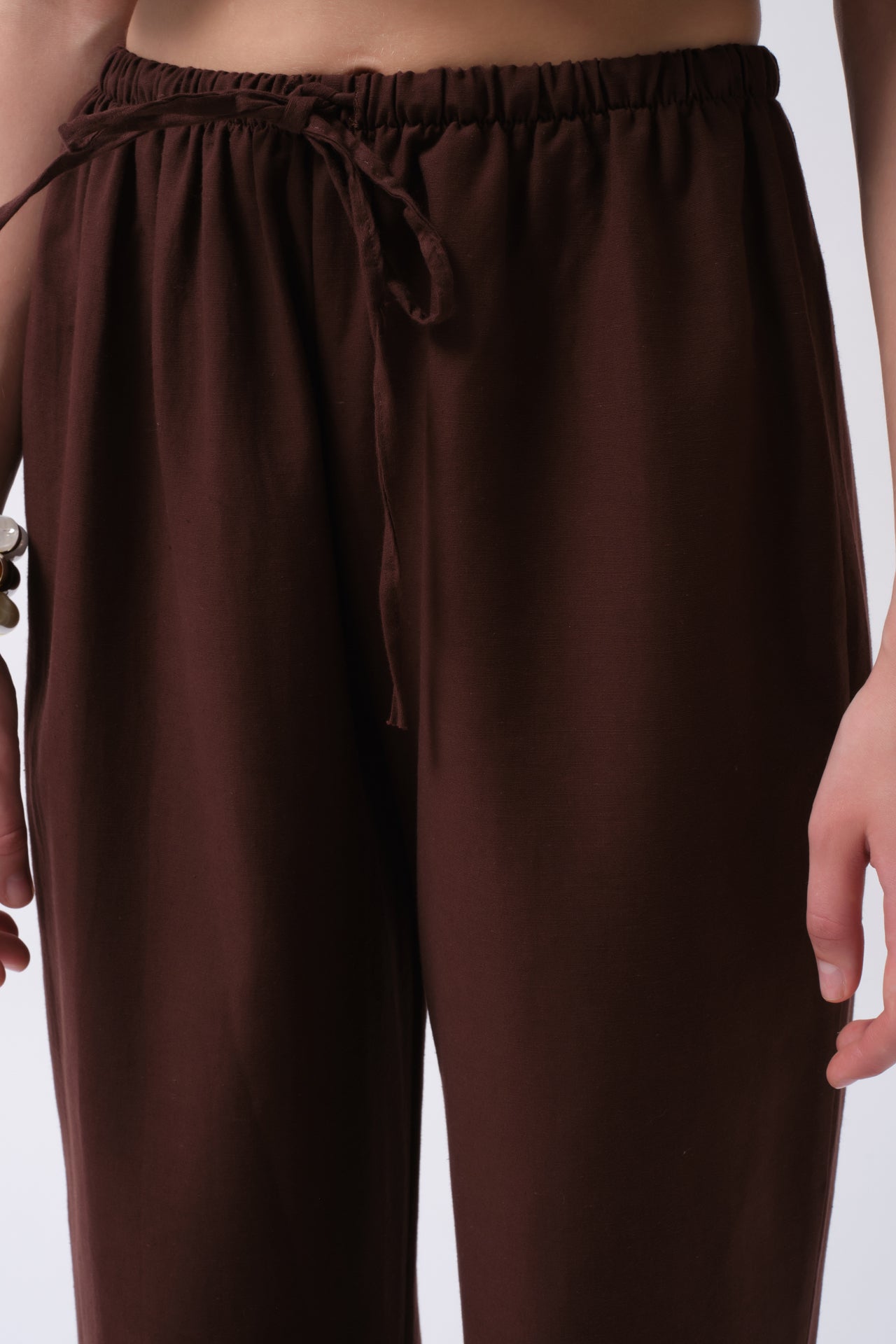Beli Bağcıklı Keten Kahverengi Pantolon