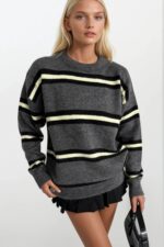 Bisiklet Yaka Çizgili Antrasit Triko Kazak