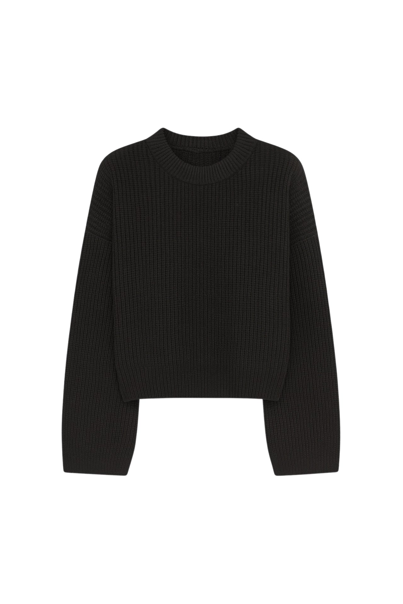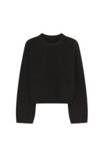 Bisiklet Yaka Örgü Detay Crop Triko Siyah Kazak
