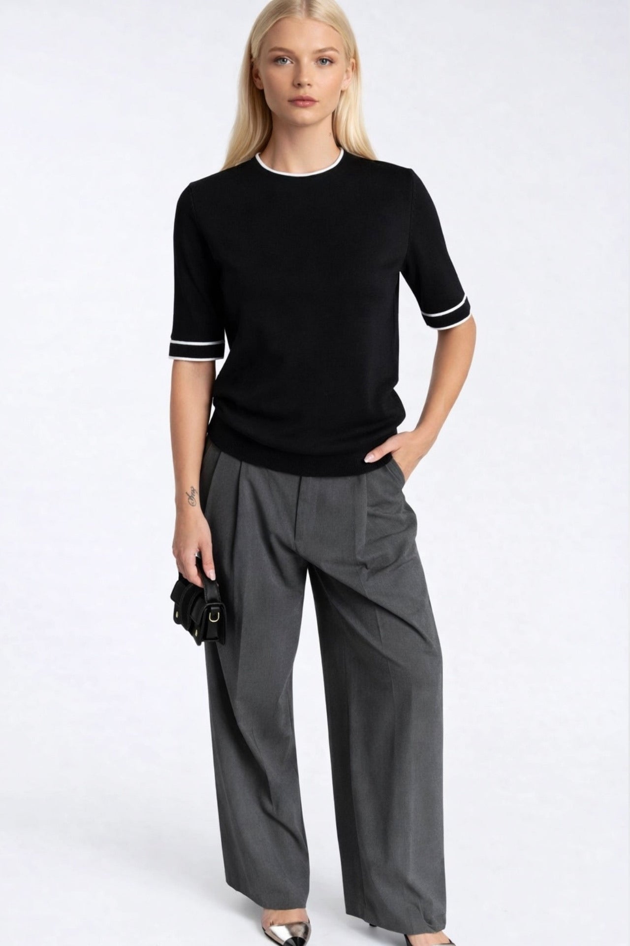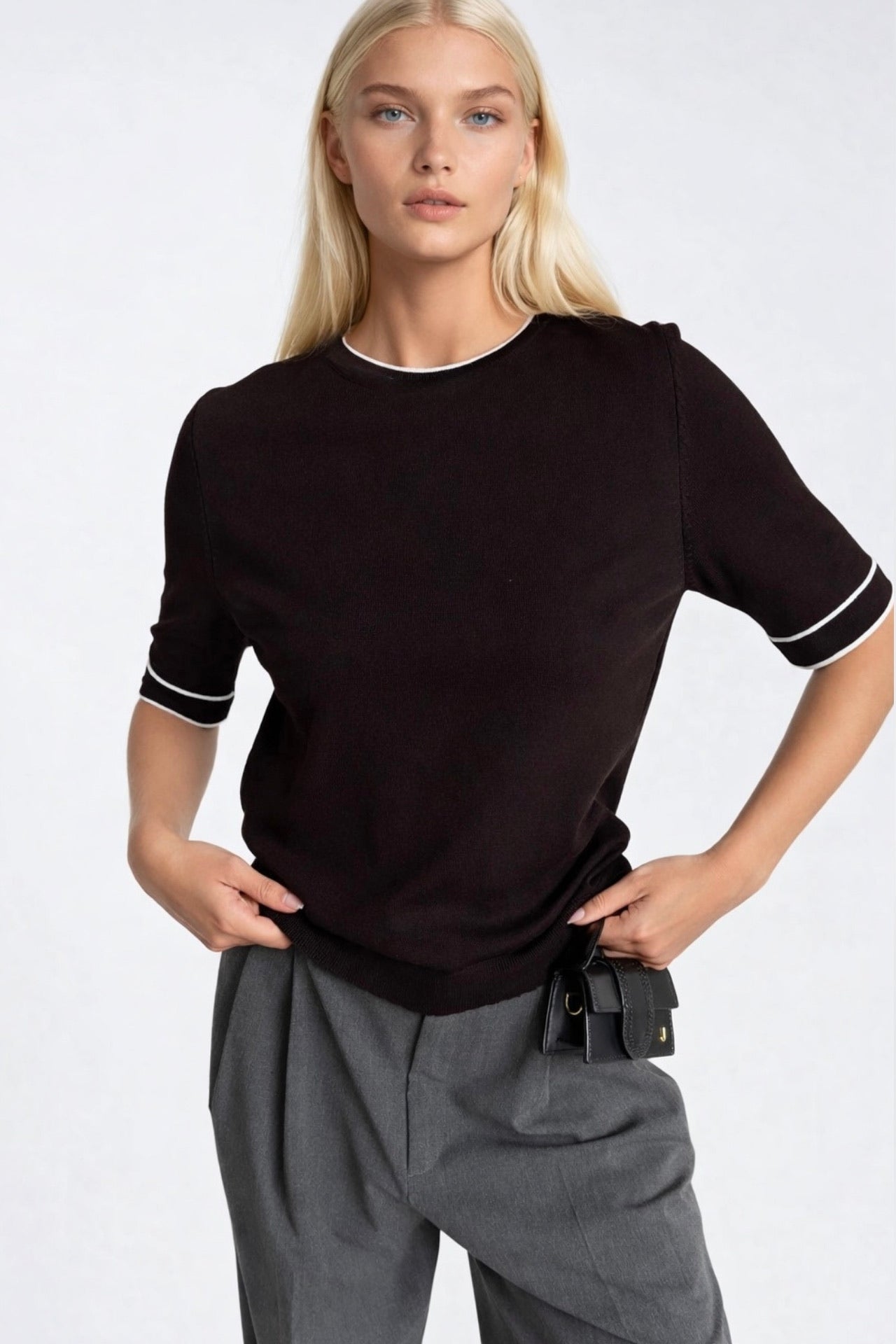 Biye Detay Bisiklet Yaka Siyah Triko Bluz