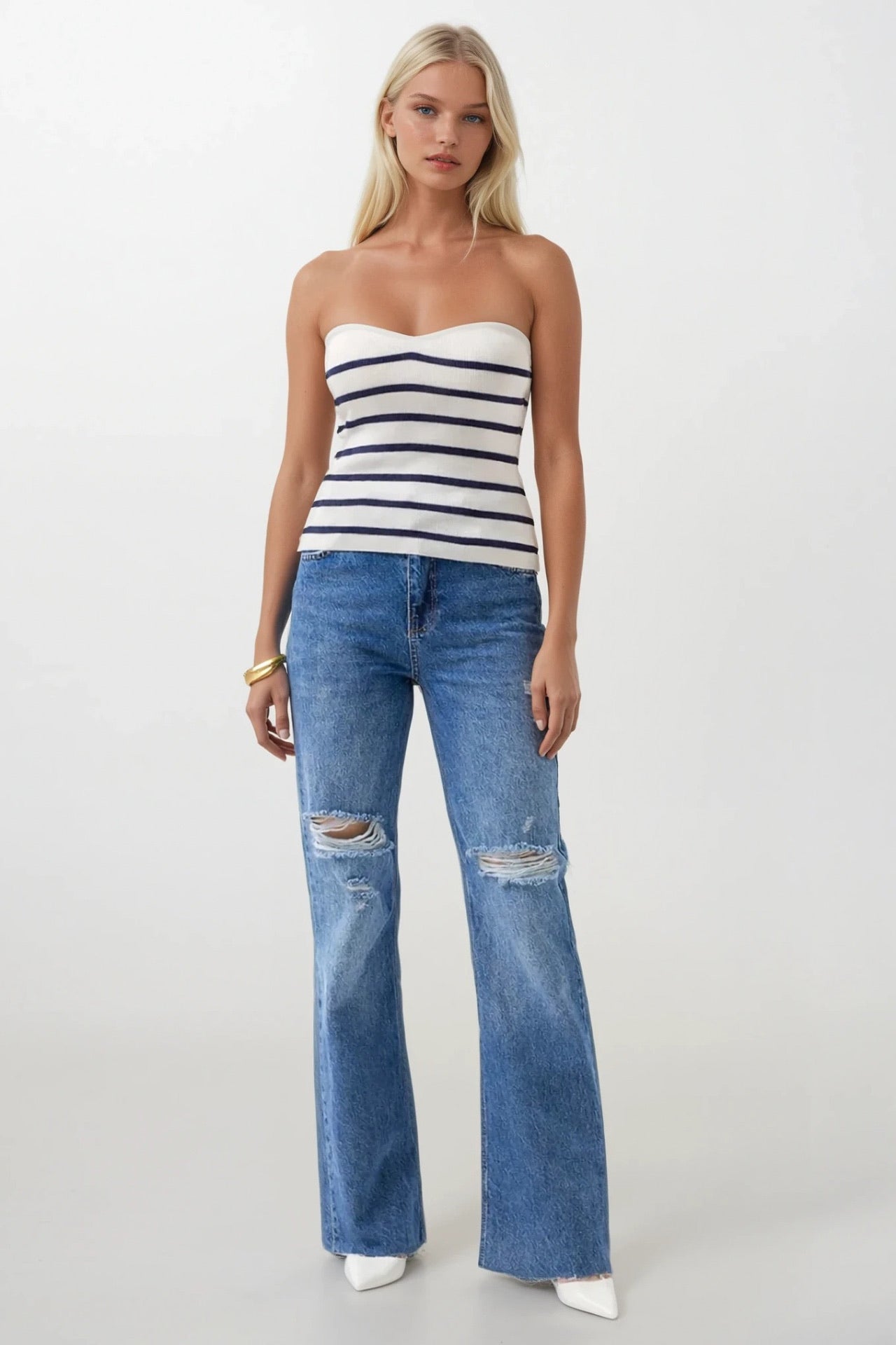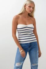 Bluzë blu e bardhë me teksturë pa rripa pa rripa